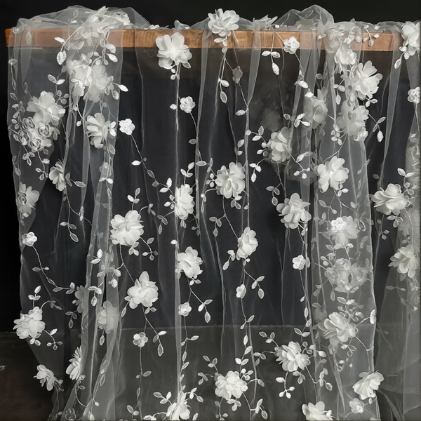 130cm Width x 91cm Width 3D Floral Embroidery Vine Floral Lace Fabric