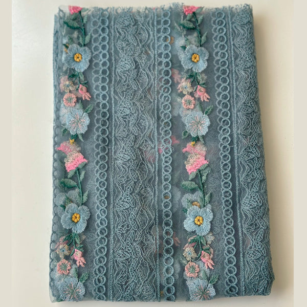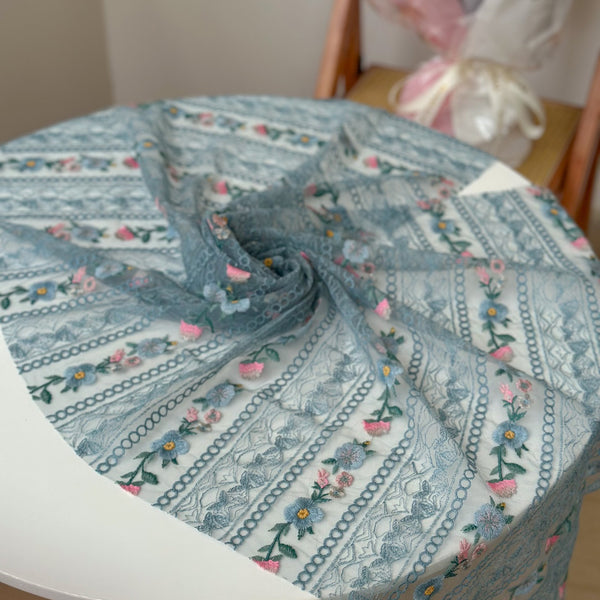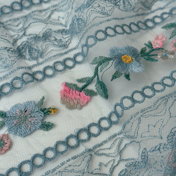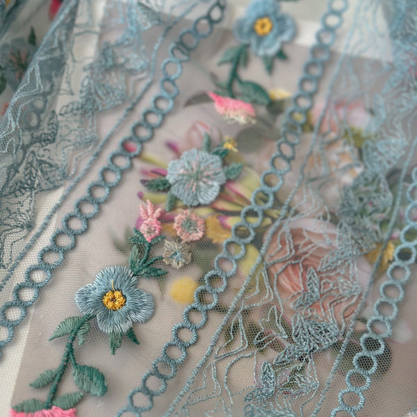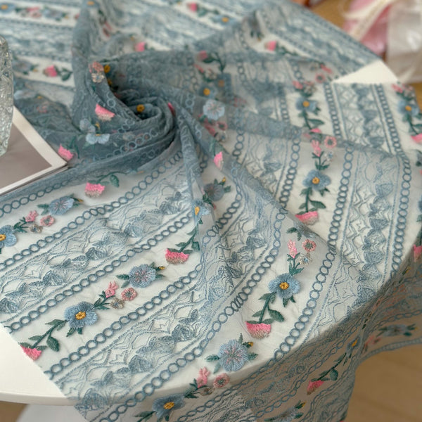 130cm Width Colorful Floral Embroidery Strip Pattern Haute Couture Lace Fabric by The Yard