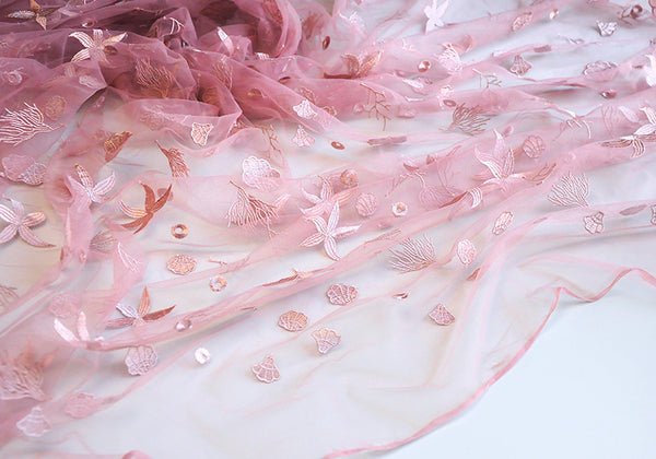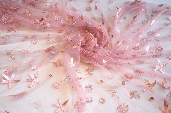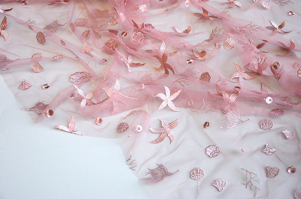 130cm Width Marine Starfish Embroidery Tulle Lace Fabric by the Yard