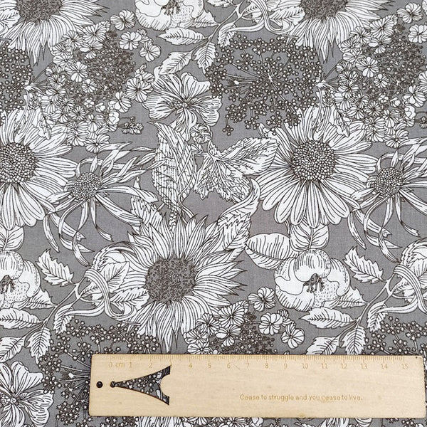 145cm Width x 95cm LengthVintage Sunflower Pattern Print Cotton Fabric